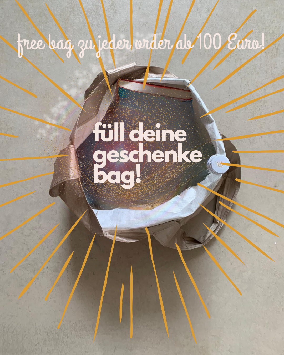 Und wenn dein Warenkorb 100.- erreicht hat, darfst du dir sogar eine schöne Tasche aussuchen. Zum Weiterschenken- oder behalten! Ist ja bald Weihnachten! = )