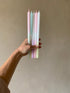 Die Kerze im Farbverlauf ist lang und dünn, Sie schmückt Kuchen, Tafel oder ist eine hübsche Festbegleitung. Die äußere Wachsschicht ist etwas empfindlich. Sei vorsichtig beim Eindrehen in den Kerzenständer. Wenn Dein Kerzenhalter etwas schmal ist, halte die Kerze kurz in heißes Wasser. So wird sie ganz geschmeidig und lässt sich gut einpassen.