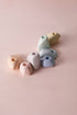 Der große Satz umfasst alle sieben Steine. Die Farben sind vom Regenbogen abstrahiert, die Formen sind organisch. Ein bißchen, als kämen sie aus dem Meer. Ergänzt wird die Reihe um goldgesprenkelte und vollständig goldfarbene Steine.